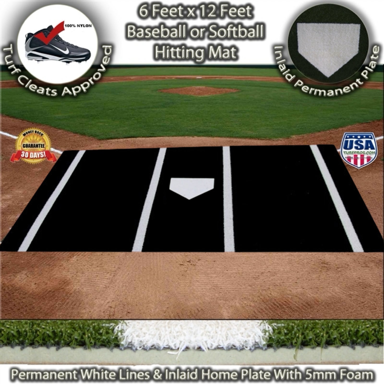 Black 6 Feet x 12 Feet Pro Ball Synthetic Turf For Baseball or Softball Hitting Mat - Inlaid Home Plate